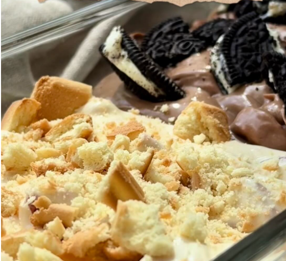 • Diğer yarısına çikolatalı karışımı, muz ve Oreo/Negro bisküviyle aynı şekilde hazırlayın.
